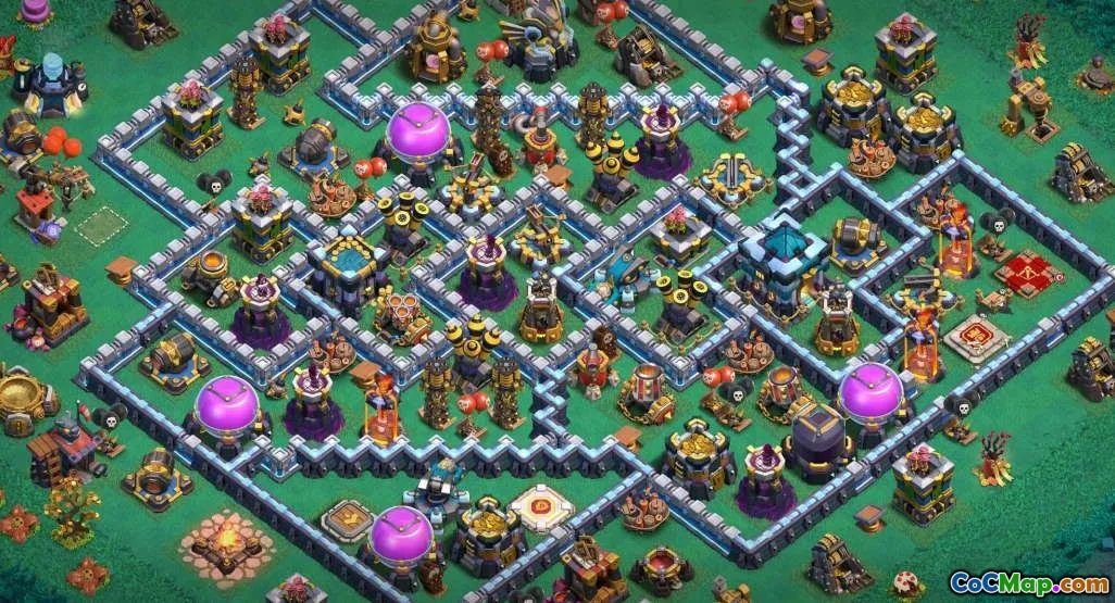 Clash of Clans -spelet erbjuder olika baslayouter utformade specifikt för Town Hall 13 för att förbättra spelstrategier. Dessa layouter inkluderar olika typer som trofébaser, krigsbaser och hybridbaser. Varje layout tjänar ett unikt syfte, vare sig det är för att skydda troféer i multiplayer -strider, utmärker sig i klankrig eller balansera försvar och resursskydd i hybridlägen.