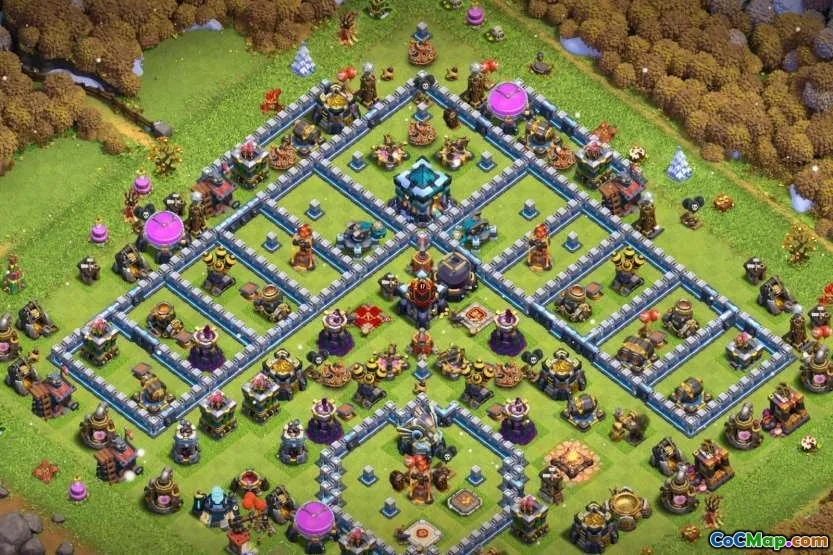 En av de populära bastyperna för Town Hall 13 är trofébasen. Spelare använder dessa layouter främst för att upprätthålla eller öka deras troféantal, vilket återspeglar deras konkurrensframgång i strider. Trophybaser är konstruerade för att skydda nyckelresurser och rådhuset och placera försvar strategiskt för att avvisa fiendens raid effektivt. Samtidigt skapar spelare också krigsbaser för att förbereda sig för klankrig, där målet är att försvara mot attacker från andra klaner, bevara stjärnor och bidra till klanens övergripande framgång.