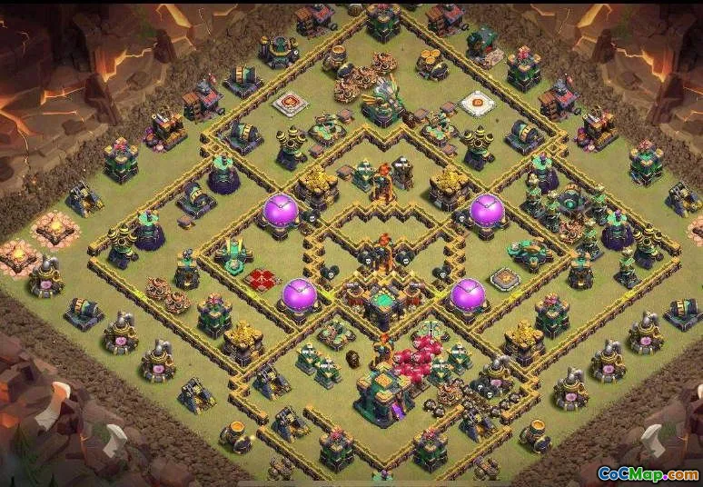 Clash of Clans -samhället erbjuder en mängd olika baslayouter designade för stadshus 14, var och en skräddarsydd för att passa olika strategiska behov. Spelare kan välja mellan olika typer av baser som hembylayouter, trofébaser, krigsbaser och jordbruksbaser. Varje bas är utformad för att ge defensiva fördelar och samtidigt maximera resursskydd eller trofévinster, beroende på spelarens mål. Komplexiteten och designen av dessa layouter kan påverka effektiviteten i spelarens övergripande strategi i spelet.
