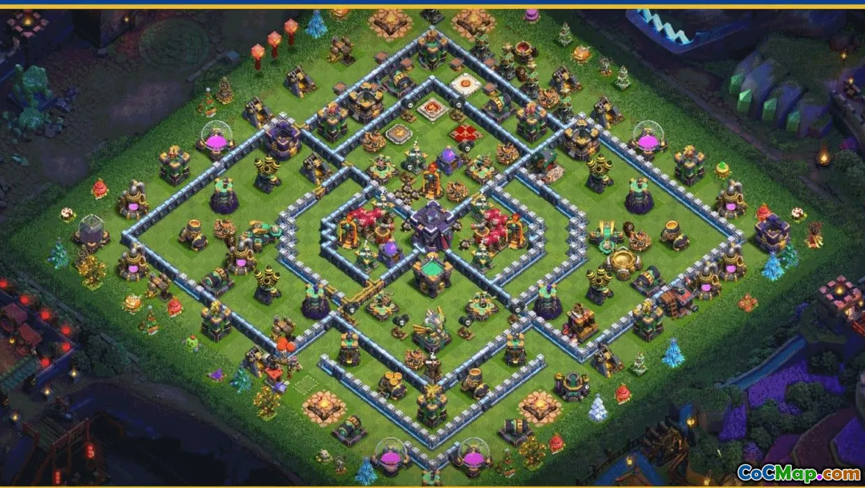 The base layouts are tailored for different purposes, such as protecting trophies, safeguarding resources, or creating balanced defenses. Each layout is designed with strategic placements for walls, defenses, traps, and hero positions to maximize protection against attacks. Players can select layouts suitable for their current progression level and specific gameplay needs, whether they want to defend their trophies or focus on resource farming efficiently.