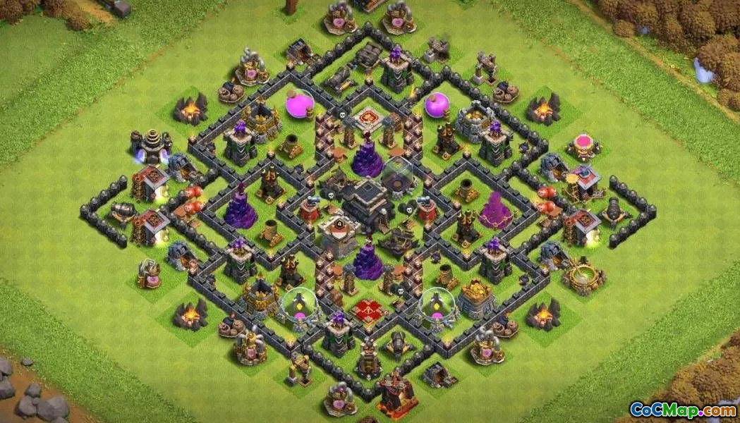 För Town Hall 9 fokuserar spelare vanligtvis på att skapa antingen jordbruksbaser eller trofébaser, var och en tjänar distinkta syften. En jordbruksbas är utformad för att skydda resurser som guld och elixir, vilket säkerställer att de är mindre sårbara för attacker. Å andra sidan fokuserar en trofébas på att försvara mot angripare för att upprätthålla eller öka spelarens troféantal. Dessa baser kan innehålla olika layouter, använda väggar, fällor och försvar för att skapa hinder som hindrar motståndarens framsteg under attacker.