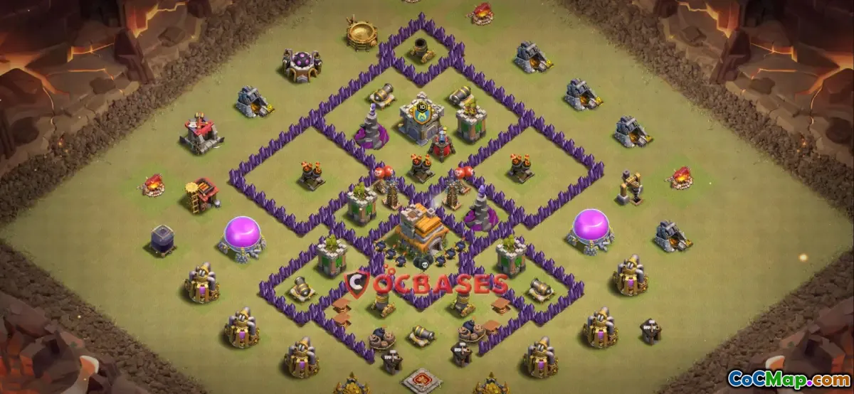 The Town Hall 7 war base in Clash of Clans is designed specifically to provide an effective defense during clan wars. This type of base layout is compact, ensuring that enemy attackers find it challenging to achieve their objectives, especially in a competitive war setting. The strategic placement of defenses and the layout of structures make it more difficult for opponents to penetrate through and destroy the Town Hall or earn stars in battle.