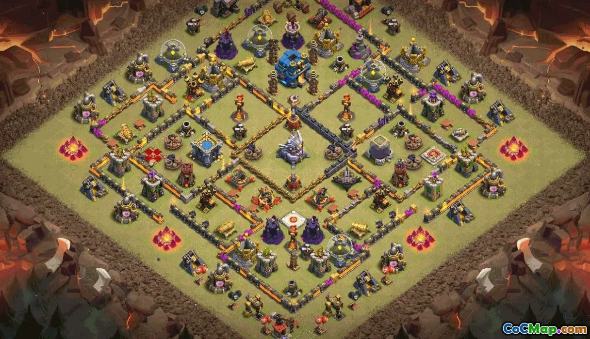 The TH12 copy emphasizes strong core protection, with a compact Town Hall surrounded by multiple compartments, resilient air- and ground-defense coverage, and well-placed traps to deter early funneling. It balances resource safety in the home village while maintaining trophy threat on the trophy base, and provides a robust war base that defends against common attack strategies at high matchmaking ranges. Use the map layout to plan your coc map and base layouts.