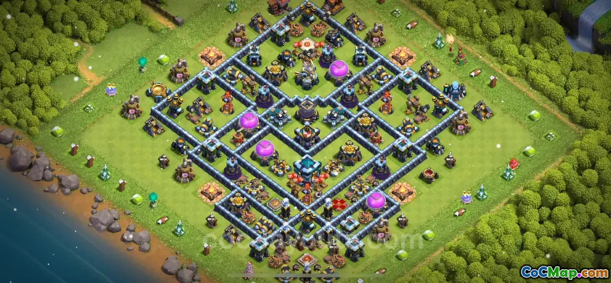 Overall, this Town Hall 13 layout serves as a reliable blueprint for players looking to improve their defenses in Clash of Clans. With its emphasis on anti-air features, particularly through the use of Electro Dragons, it showcases a unique approach to farming bases. Those who utilize this design can benefit from a strong defense that not only protects resources but also maintains the integrity of their overall strategy in the game. Copying this base could be a wise choice for anyone focused on efficient farming and resource management.