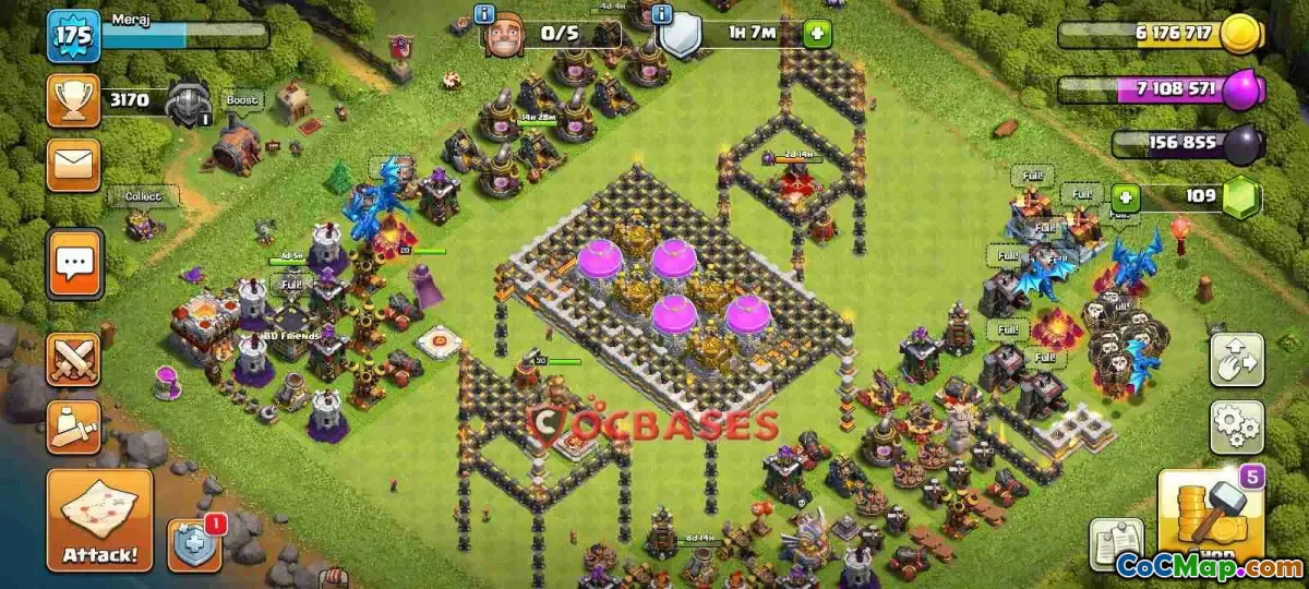 Explore our Town Hall 11 base for Clash of Clans! Discover a fun layout featuring a table and chairs for King and Queen. Join the battle today!
