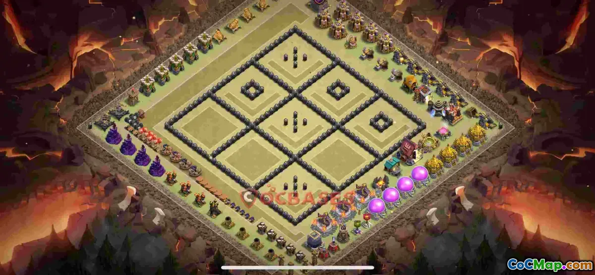 Whether you're aiming to maximize your resource gain or defend your trophies, this layout provides robust walls, well-placed defenses, and strategic trap placement to keep attackers at bay. The copy link makes it easy to implement this layout in your own Clash of Clans base, enhancing your overall gaming experience with proven defense strategies tailored for TH9 players.
