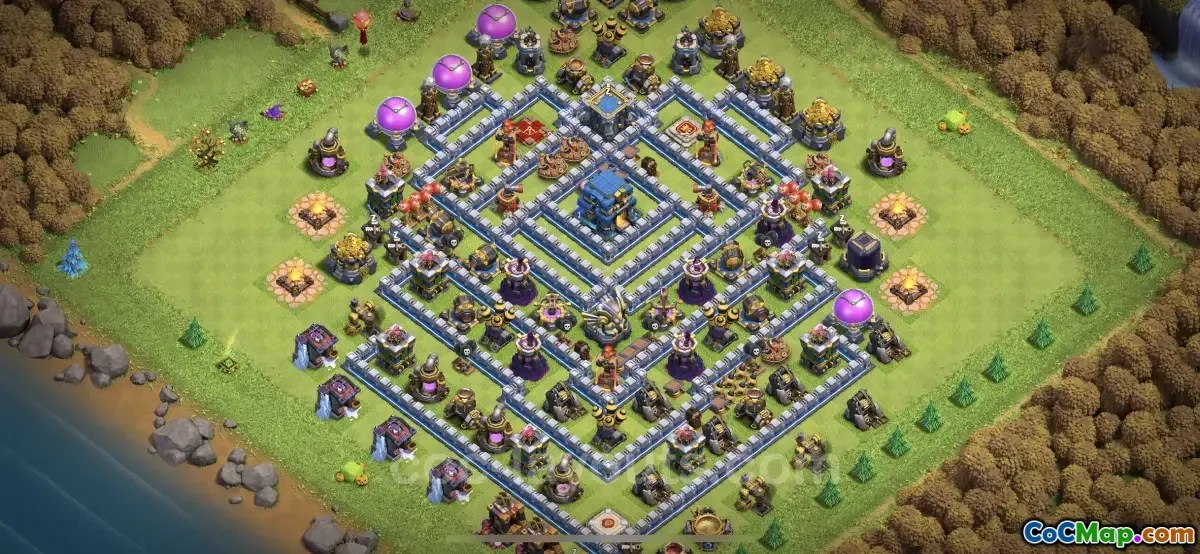 Moreover, the combination of the base layout and high-level defensive building upgrades ensures a stronghold that resists invasions effectively. This particular design caters to balancing resource allocation while providing sufficient protection across all fronts. Players often share successful base designs, making it easier for others to replicate effective strategies. Resources are preserved by maintaining a compact layout while maximizing defensive strengths, allowing a coordinated defense throughout attack sequences.