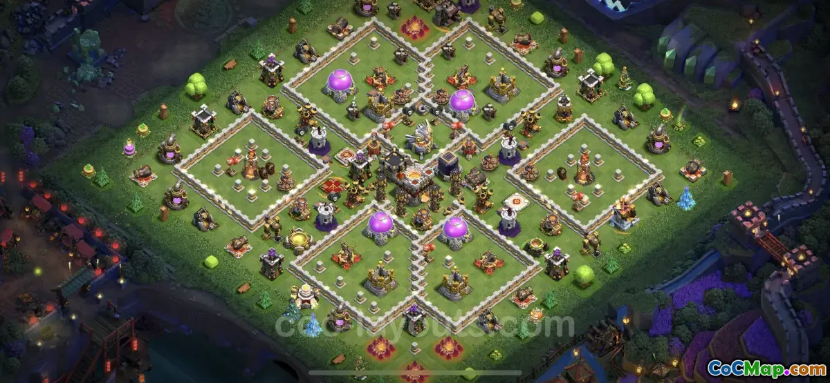 The Farming Base for Town Hall Level 11 in Clash of Clans is designed specifically for resource defense, focusing on protecting precious resources from enemy raids. This base layout incorporates features that make it difficult for attackers to successfully plunder resources. Key elements of the design include strategic placement of buildings and defensive structures that work together to create an effective defense against various attack strategies.