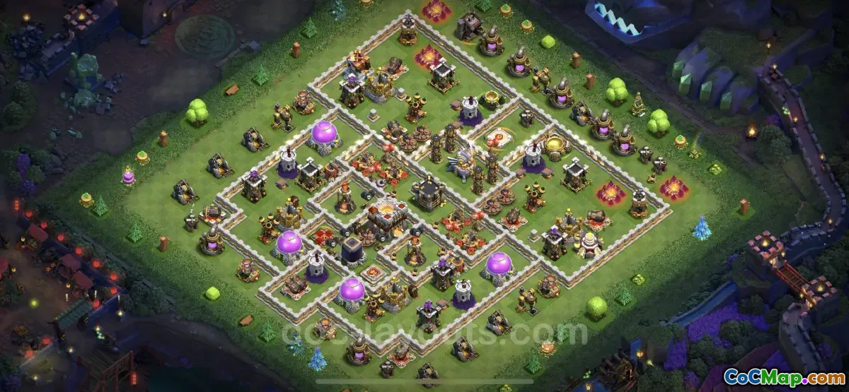 The Farming Base for Town Hall Level 11 in Clash of Clans is designed specifically for resource defense, ensuring that players can effectively protect their hard-earned resources. This base layout focuses on a hybrid defense strategy, which means it aims to defend against various types of attacks while also securing farming resources. With a well-planned design, the base helps players save their elixirs and gold, making it an essential tool for those looking to optimize their farming experience.