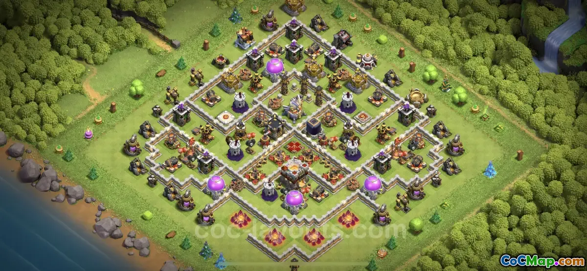 Discover the ideal TH11 Hybrid Farming Base for Clash of Clans! Secure your resources with our expertly designed layout. Copy the base today!