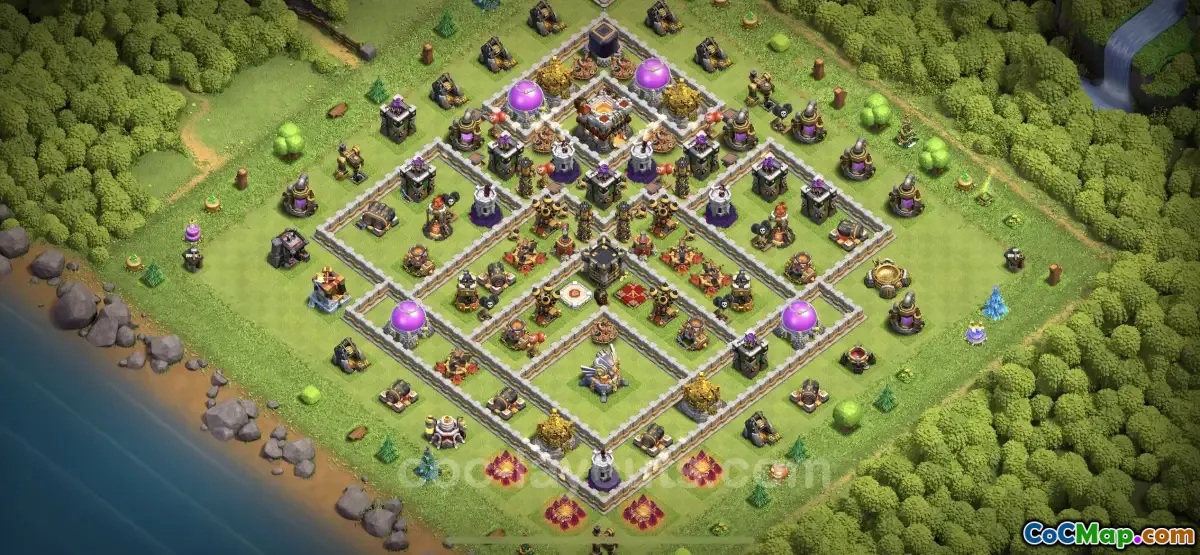 This hybrid defense base for TH11 is designed with strategic placement of buildings and traps to optimize defensive capabilities. By creating a structure that prioritizes both resource protection and trophy retention, players can enjoy a successful experience in Clash of Clans. Players can copy the base design easily using the provided link, which allows them to replicate the defensive strategies illustrated in the design.