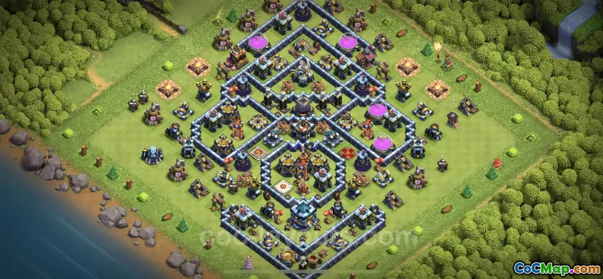 Discover the ultimate TH13 farming base layout for Clash of Clans! Anti-3 Star and resource defense design with a link for easy copy. Optimize your farming today!