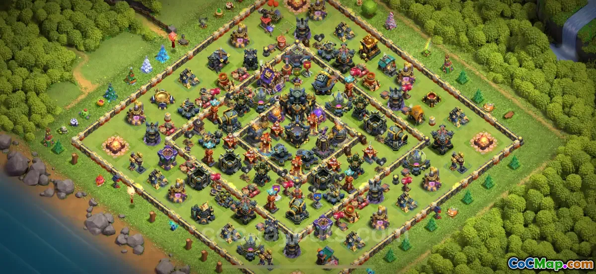 The base design for Town Hall 17 (TH17) is a strategic layout specifically aimed at enhancing defensive capabilities against aerial attacks, particularly from dragons and electro dragons. This design integrates anti-air defenses to effectively counter these units, making it harder for opponents to achieve a successful raid. The focus is on creating a hybrid base that protects key resources while maximizing the strength of defensive structures against air units. This particular setup is being promoted for the Clash of Clans game for the year 2025.