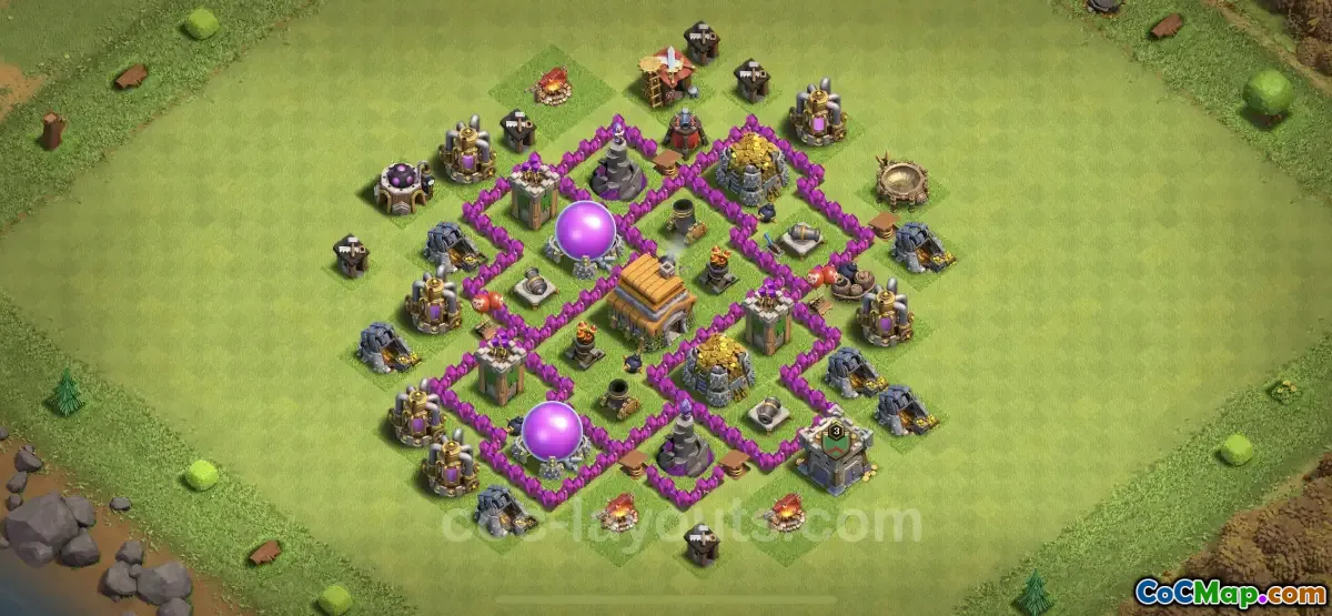 Discover the ultimate TH6 farming base layout for Clash of Clans! Get anti-3 star designs and links for optimal resource defense. Perfect for Town Hall 6!