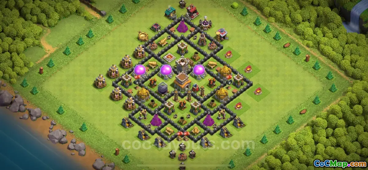 Sammantaget är denna TH8-basdesign en väl genomtänkt plan för spelare fokuserade på resursförsvar och jordbruk i Clash of Clans. Genom att implementera strategiska placeringar av försvar, murar och fällor kan spelare effektivt skydda sina resurser samtidigt som det gör det utmanande för motståndarna att uppnå sina stridsmål. Som ett resultat främjar denna layout inte bara resurssäkerhet utan förbättrar också den övergripande spelupplevelsen för TH8-spelare 2024.