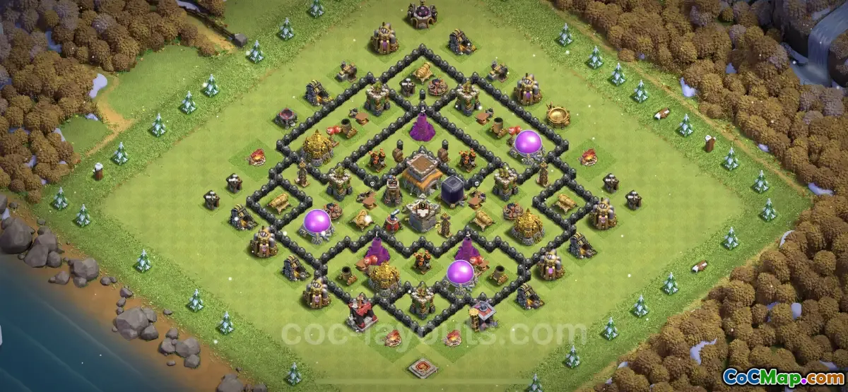 A key feature of the TH8 base layout is the placement of defenses and resource storages. By clustering the most critical buildings together, players can create layers of defense that are more difficult for opponents to breach. This hybrid design helps players safeguard their resources while still being competitive in trophy leagues. The layout is intended to minimize the number of resources lost during raids, thereby optimizing farming efficiency.
