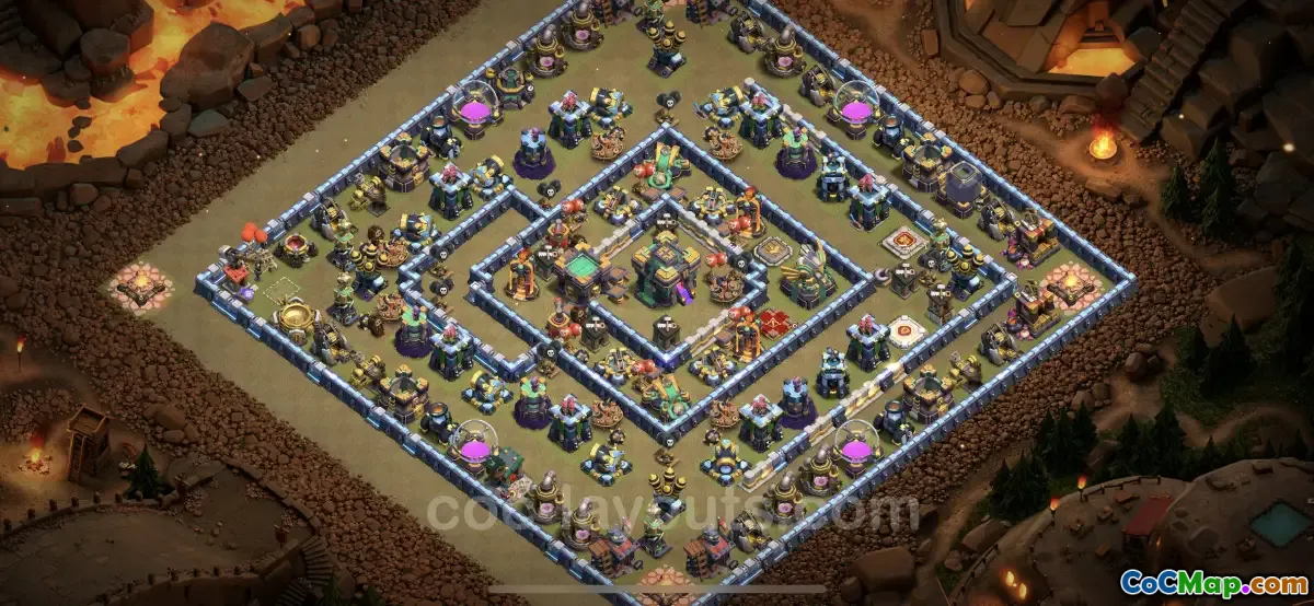 Players seeking to enhance their defensive strategy will benefit from copying this top-tier TH14 base layout. Its features focus on countering various attack strategies, making it effective against both ground and air units. The careful arrangement of defenses, traps, and layout helps in thwarting enemy assaults while keeping resources safe. Overall, this base is a solid choice for players who want to reinforce their defenses and deter attackers from succeeding in their raids.