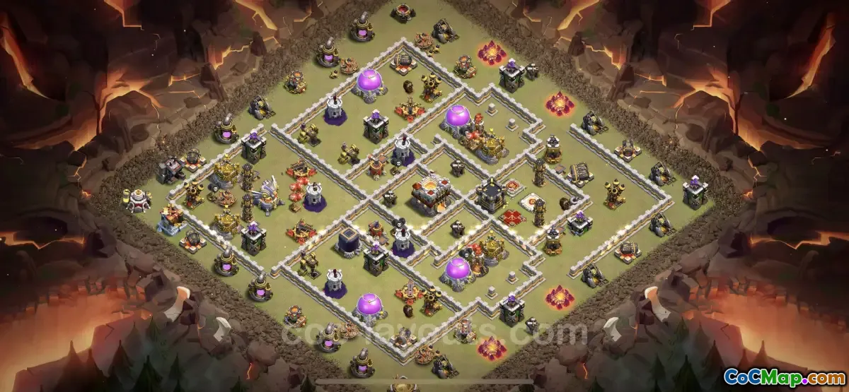 This hybrid base layout includes strategic placements of defensive structures, ensuring that key defenses such as Archer Towers, Cannons, and Wizard Towers are optimally positioned to cover vulnerable areas. Furthermore, the layout is crafted to mislead attackers, forcing them to waste troops or fail to capture the necessary stars. With the right placement of walls and traps, opponents will find it challenging to penetrate the heart of the base, leading to ineffective attacks and allowing the owner to maintain a competitive edge in war scenarios.