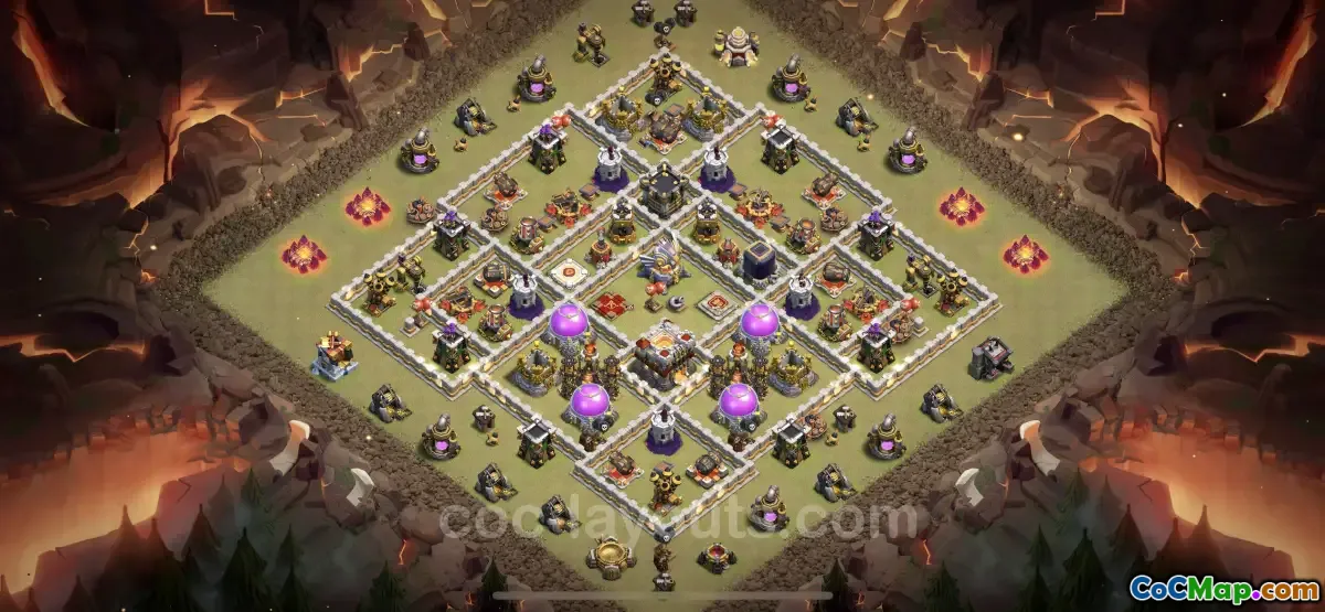 (Top Anti 3 Star Hybrid TH11 War Base with Link - COC #25358)