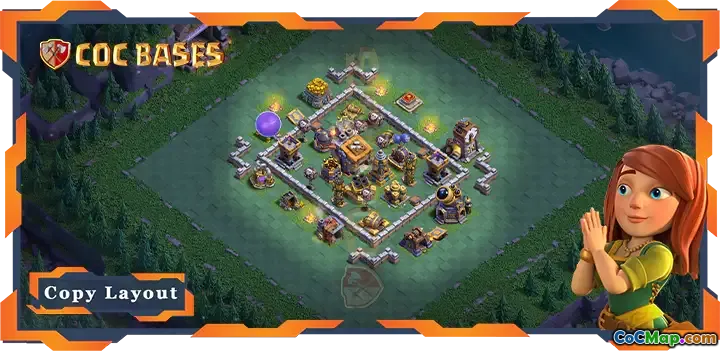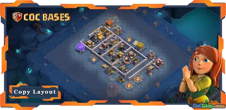 I Clash of Clans är Builder Hall Level 09-baslayouten avgörande för att försvara sig mot fiendens attacker. Designen fokuserar på att strategiskt placera bygghallen nära mitten av basen för att maximera dess defensiva kapacitet. Denna layout drar fördel av de defensiva strukturerna som omger den och skapar ett befäst område som är utmanande för motståndare att infiltrera.