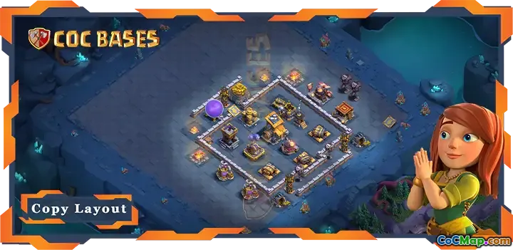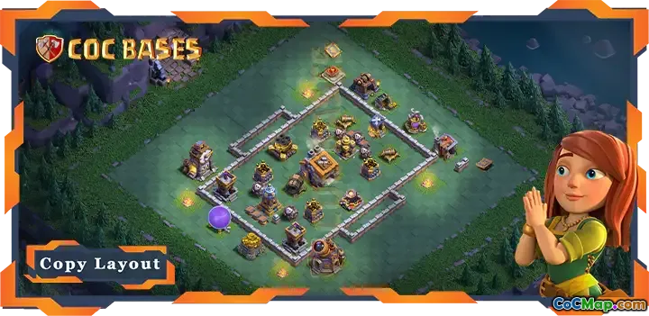 Sammantaget är denna Builder Hall Level 09-baslayout utformad för att optimera försvaret och skapa ett utmanande scenario för fiendens spelare. Varje element, från den centrala bygghallen till omgivande försvar och murar, fungerar i harmoni för att värna om värdefulla resurser och själva byggarhallen. Spelare som antar denna design kan förvänta sig en stark defensiv hållning som tål olika attackstrategier.