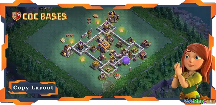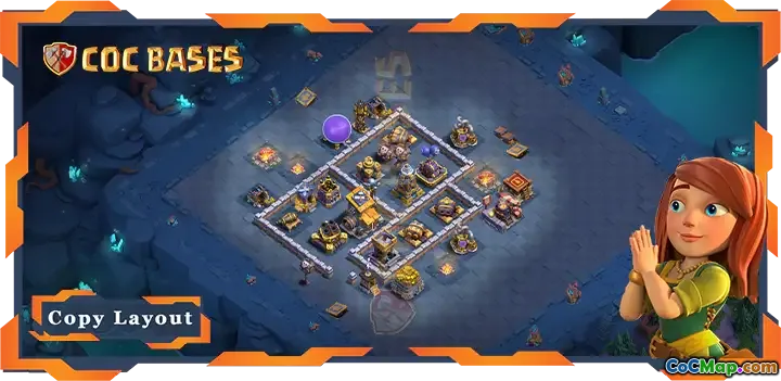 Centralt i basdesignen är viktiga defensiva enheter, inklusive smällare, en jättekanon, en stekare, en lavakastare, minor och en kross. Dessa strukturer är strategiskt placerade för att skapa ett formidabelt försvar som kan avskräcka angripare genom att tillfoga skada från flera vinklar. Varje defensiv enhet tjänar ett specifikt syfte: smällare riktar in sig på luftenheter, den gigantiska kanonen gör betydande skador på markenheterna och stekaren hjälper till att rikta in sig på båda typerna av fiendestyrkor. Lavakastaren lägger till ett område för förnekelse, vilket gör det svårt för fiender att närma sig Builder Hall på ett säkert sätt.