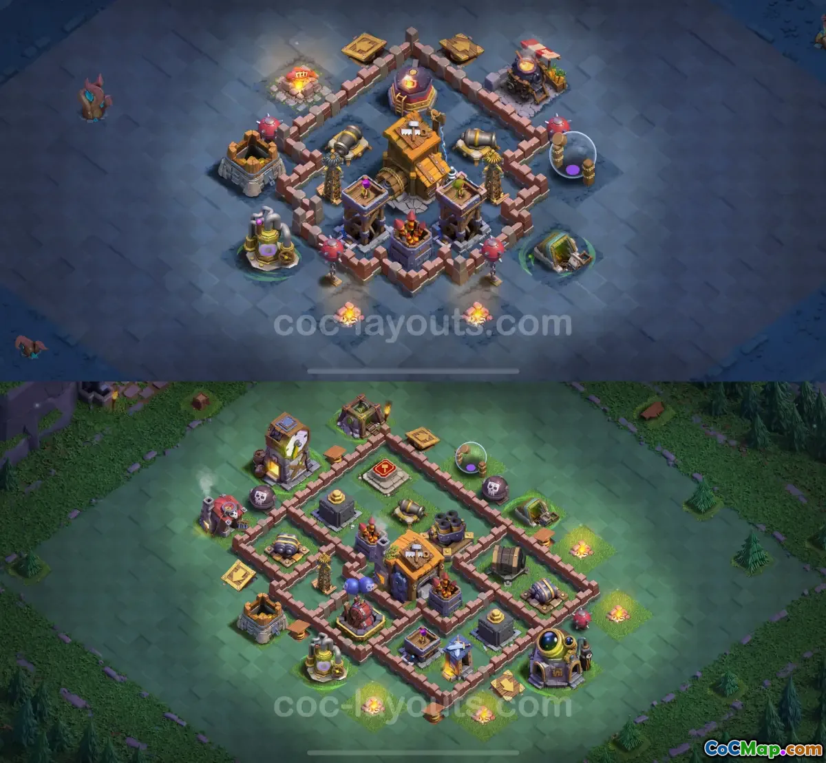 Denna basdesign innehåller strategiska placeringar av defensiva strukturer som kanoner, bågskyttar och fällor. Genom att noggrant arrangera dessa element kan spelare skapa ett väl avrundat försvar som kan hantera både mark- och luftanfall. Designen understryker vikten av täckning och överlappningar i vapen, maximerar varje defensiv enhets effektivitet och skapar utmanande scenarier för angripare.