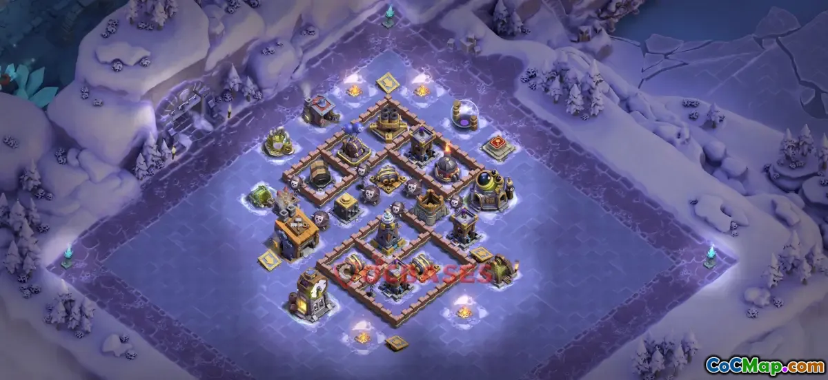 The Builder Hall 8 trophy base is designed to maximize defensive capabilities and maintain high trophy counts during multiplayer battles. Its strategic layout effectively counters common attacking strategies, ensuring your defenses stay intact and trophies are protected. The design features well-placed traps, walls, and defensive structures that create a challenging environment for attackers, making it ideal for players striving to climb the trophy ladder.