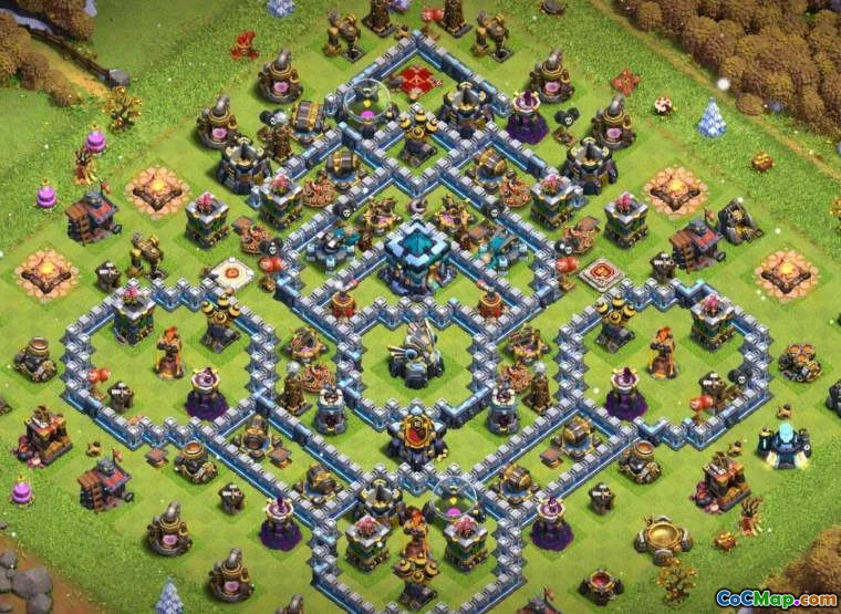 Hybridbasen kombinerar element i trofé och jordbrukslayouter, vilket möjliggör både resursskydd och troféretention. Denna mångfacetterade strategi är idealisk för spelare som vill maximera sin övergripande spelupplevelse utan att behöva växla mellan olika layouter ständigt. Genom att använda de högra baskartorna på Town Hall 13 kan spelare skapa ett fäste som inte bara försvarar mot attacker utan också sveper seger under Clan Wars. Att effektivt reservera resurser och försvara sina troféer bidrar till en trevlig och framgångsrik kollision av klansresa.