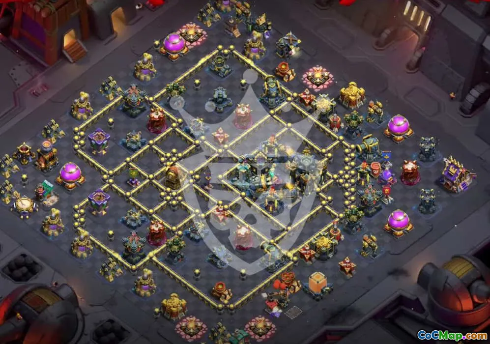 This comprehensive copy base layout for Clash of Clans Town Hall 17 provides a balanced design for home villages, trophy pushing, and clan wars. It features strategic placement of defensive structures and traps to maximize protection against attackers, making it ideal for both league climbing and competitive war scenarios.
