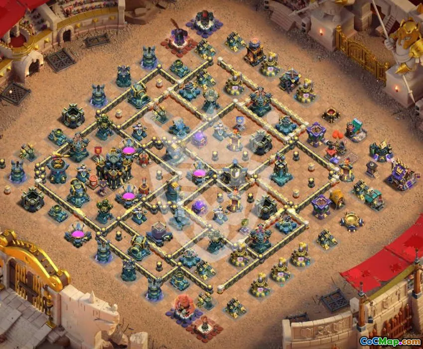 Discover a highly effective Clash of Clans Town Hall 17 (TH17) base layout designed for optimal defense in war, trophy pushing, and farming. This layout strategically places defensive structures and traps to maximize protection against enemy raids, while ensuring resource safety and balancing offense opportunities.