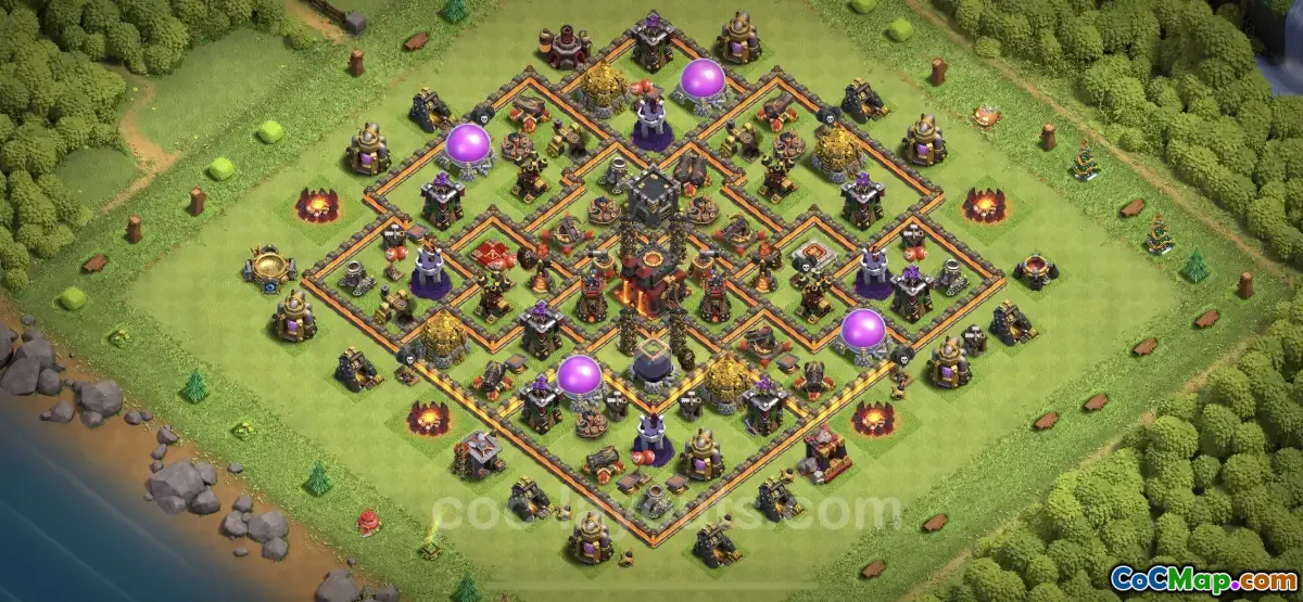 The Town Hall Level 10 base design is specifically crafted to enhance defense against aerial attacks, particularly those utilizing dragons. This type of base layout is highly efficient in preventing three-star victories from opponents, making it an attractive option for players looking to strengthen their defenses in Clash of Clans. Its strategic features include various traps and building placements that target flying units, effectively neutralizing any aerial onslaught.