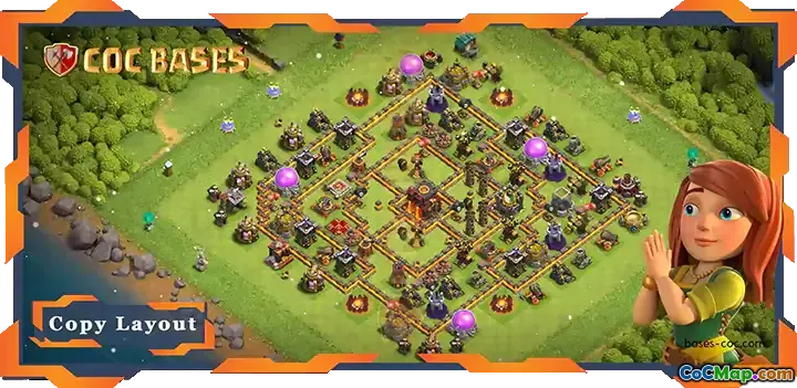(Top TH10 Defense Base: Hybrid & Farming Layout for COC #19397)