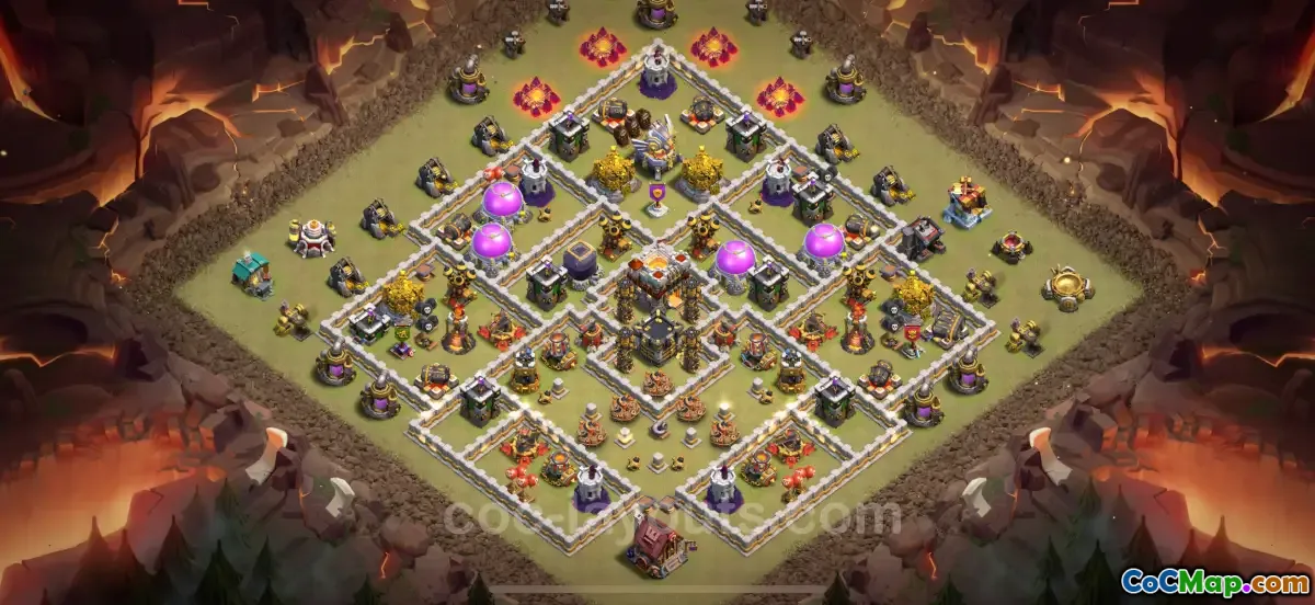 The Best War Base for Town Hall Level 11 (TH11) in Clash of Clans (COC) 2025 focuses on creating a strong defensive layout that can effectively withstand various attack strategies. Designed as a Hybrid base, it aims to defend against diverse threats while also being suitable for Clan War Leagues (CWL). This design is particularly advantageous as it incorporates elements that make it resistant to all types of attacks, thus prioritizing overall defense.