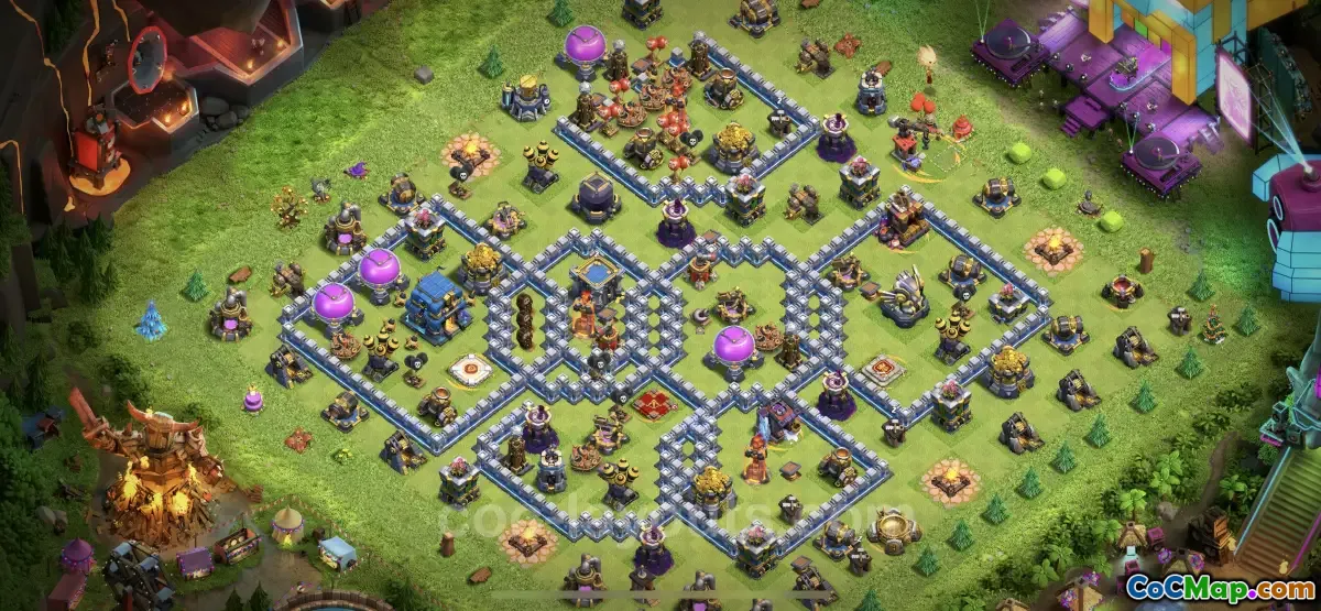 The bases tailored for TH12 defense are constructed with anti-three-star strategies in mind. This means these layouts are focused on preventing attackers from achieving three stars, which is done by protecting key structures such as the Town Hall, the Clan Castle, and the Eagle Artillery. By building a fortified layout that is difficult for attackers to penetrate, players can maintain their trophies and defend against powerful attack strategies.