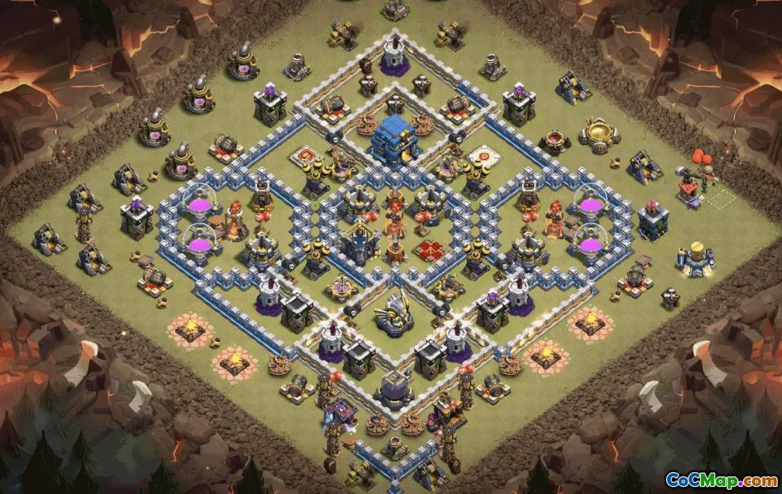 Discover expertly designed Town Hall 12 (TH12) base layouts ideal for clan wars, trophy pushing, and protecting your resources. These layouts are crafted to maximize defense, with strategic placement of walls, traps, and defenses, making it difficult for attackers to penetrate your base. You can easily copy these layouts to enhance your gameplay and rank higher in battles.