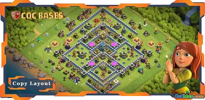 A key feature of the TH12 farming base layout is its hybrid nature. It aims to safeguard both trophies and resources, making it appealing for players who wish to maintain a good defensive standing while also concentrating on farming. The structure of the base is designed in a way that encourages attackers to go through the most fortified areas first, which can lead to them facing multiple defenses at once, ultimately deterring them from successfully raiding the base.