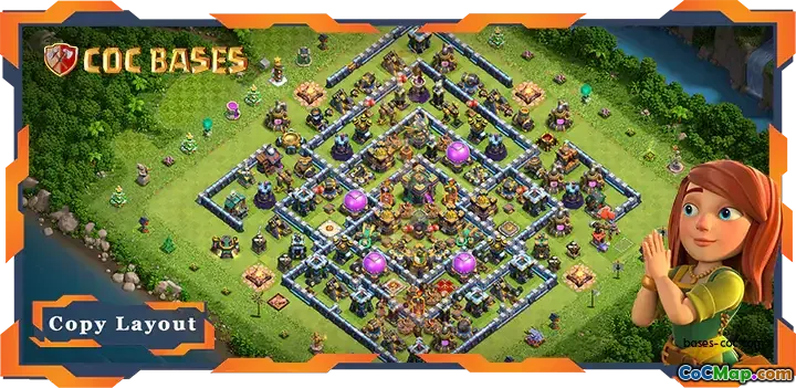 Overall, the TH14 farming base harnesses a well-structured design divided into multiple sections, securing resources and defensive buildings effectively. The thoughtful arrangement combines wall placements, defensive structures, and resource storage to create a base that stands resilient against various attack strategies. Whether facing ground or air assaults, this layout provides players with an advantageous position, allowing them to protect their hard-earned resources while maintaining a formidable defense.