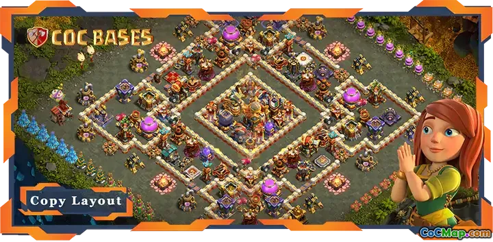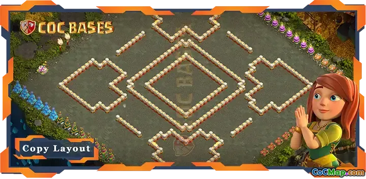 Layouten innehåller också ett klan-slott, som är en integrerad del av att tillhandahålla ytterligare defensiva trupper vid attack. Närvaron av en bygghydda pekar på den pågående utvecklingen av basen, vilket gör att trupper kan tränas och försvar kan uppgraderas. Trollformelfabriken, som ligger i närheten, tillhandahåller kritiska trollformler under strider, vilket ytterligare förbättrar basens försvarsförmåga.