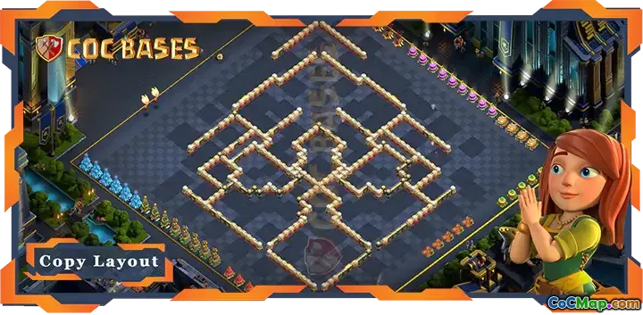 Det primära syftet med denna baslayout är att ge en strategisk fördel mot angripare. Placeringen av defensiva strukturer, såsom kanoner och bågskyttestorn, är optimerad för att skapa överlappande eldfält. Detta säkerställer att fiender möts med en koncentrerad defensiv insats från flera vinklar, vilket förbättrar det övergripande försvaret av basen. Spelare kan använda denna layout för att absorbera skada samtidigt som de skyddar sitt rådhus.