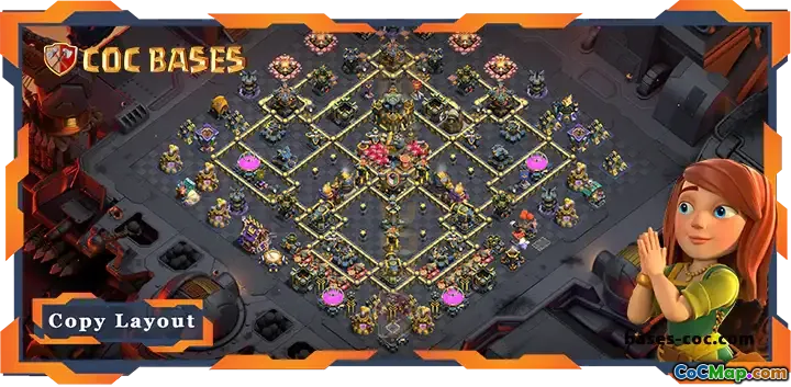 This top-tier War Base layout for TH17 in Clash of Clans is optimized to counter all attack strategies. Its innovative design provides comprehensive protection for key defenses, resources, and heroes, making it highly resistant to both ground and air assaults.