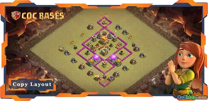 I den beskrivna Town Hall 6-baslayouten betonar designen ett starkt försvar mot flygattacker och syftar till att förhindra trestjärniga avslutningar under krig och Clan War Leagues (CWL). Rådhusets centrala placering är strategisk, vilket säkerställer att det är väl skyddat från fiendens trupper. Genom att placera viktiga defensiva strukturer runt den försöker baslayouten skapa en robust defensiv perimeter som är utmanande för angripare att tränga in.