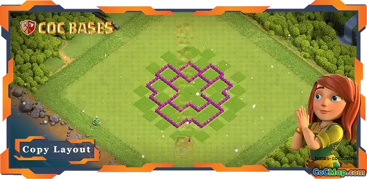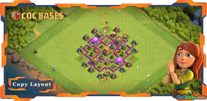 Denna hybridbaslayout för Town Hall 6 (TH6) är speciellt utformad för att tjäna dubbla syften: att försvara sig mot olika attackstrategier samtidigt som den underlättar effektiv jordbruk. Rådhusets centrala placering är strategisk, eftersom det hjälper till att skydda de vitala strukturerna i basen. Denna design minimerar chanserna för en fiende att lyckas få troféer genom att placera rådhuset på en välförsvarad plats.