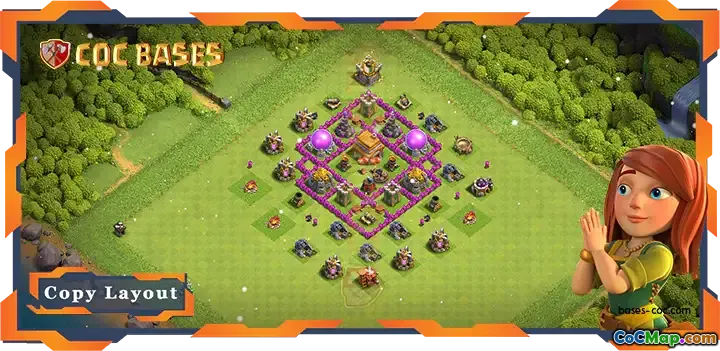 Denna Town Hall 6-hybridlayout kombinerar effektivt element av både försvar och resursskydd, vilket tilltalar olika spelarstrategier. Dess centrala layout, förstärkt av defensiva strukturer och strategiska murar, ger en formidabel utmaning för angripare samtidigt som den säkerställer att spelarens resurser är säkrade. Sammantaget är den här designen ett väl genomtänkt tillvägagångssätt för spelare som fokuserar på både attackerande och defensiva prestationer i deras Clash of Clans-spel.
