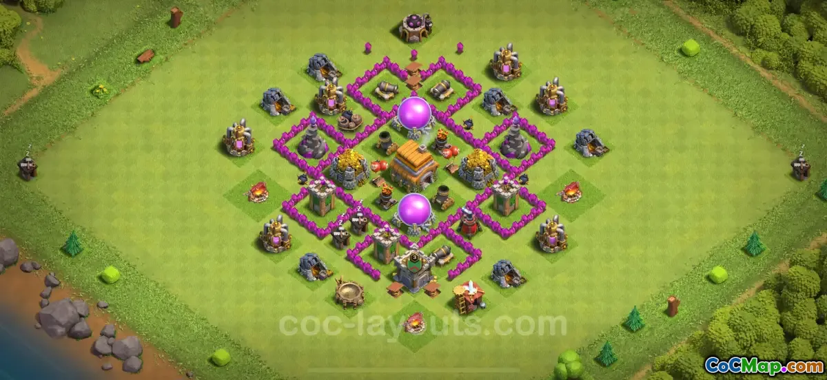 The hybrid base at TH6 is specifically curated for players who aim to collect trophies efficiently while ensuring their resources remain safe. This type of base layout balances both defense against enemies and the security of valuable resources. With a strong emphasis on protecting trophies, the design positions defenses in such a way that they can effectively respond to a range of offensive strategies, from ground attacks to aerial strikes.