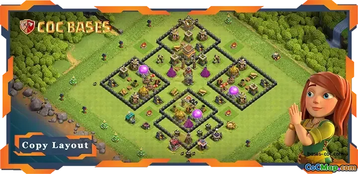 In the game Clash of Clans, having a solid farming base layout is crucial for TH8 players. One effective design is the Hybrid layout that also incorporates measures against air attacks. This layout is strategically organized in four distinct corners, which helps to fortify the overall defense and resource protection.