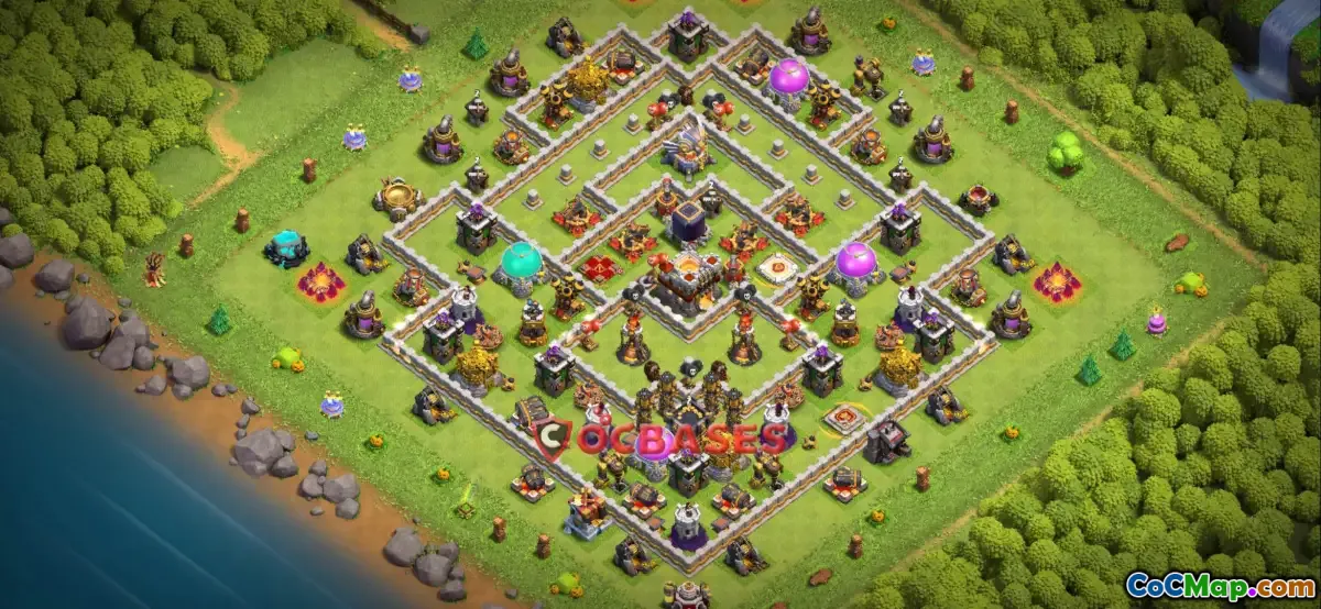 One common approach for Town Hall 11 trophy bases is to centralize the important defensive buildings and the Town Hall itself. By doing this, attackers are forced to commit troops toward the center of the base, which can lead to greater risk of failure. Defensive buildings, such as inferno towers and air defenses, can be strategically placed to cover each other's blind spots, further enhancing the base's overall defense.