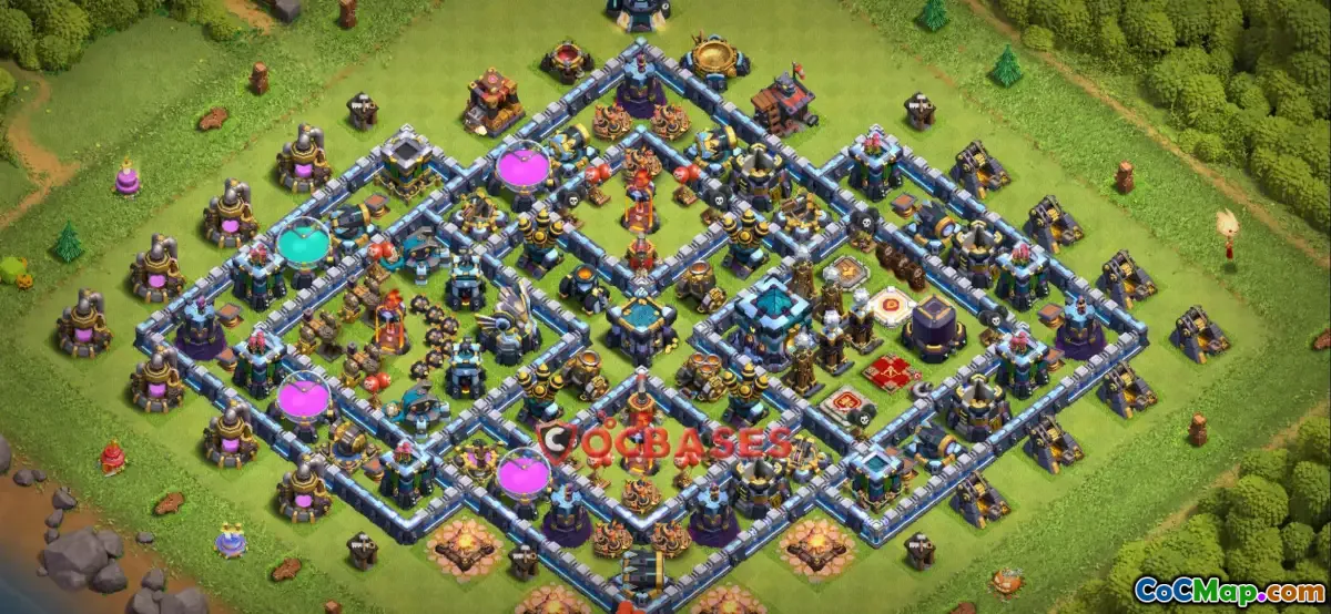 One of the key features of a Town Hall 13 farming base is its anti-ground design. This means that the layout is optimized to defend against ground troops, which are often used in farming strategies. By compactly arranging defenses, traps, and storages, players can create a formidable barrier that is difficult for opponents to penetrate, particularly with ground units. This type of layout can often frustrate attackers and lead to fewer successful raids, preserving the player’s resources.