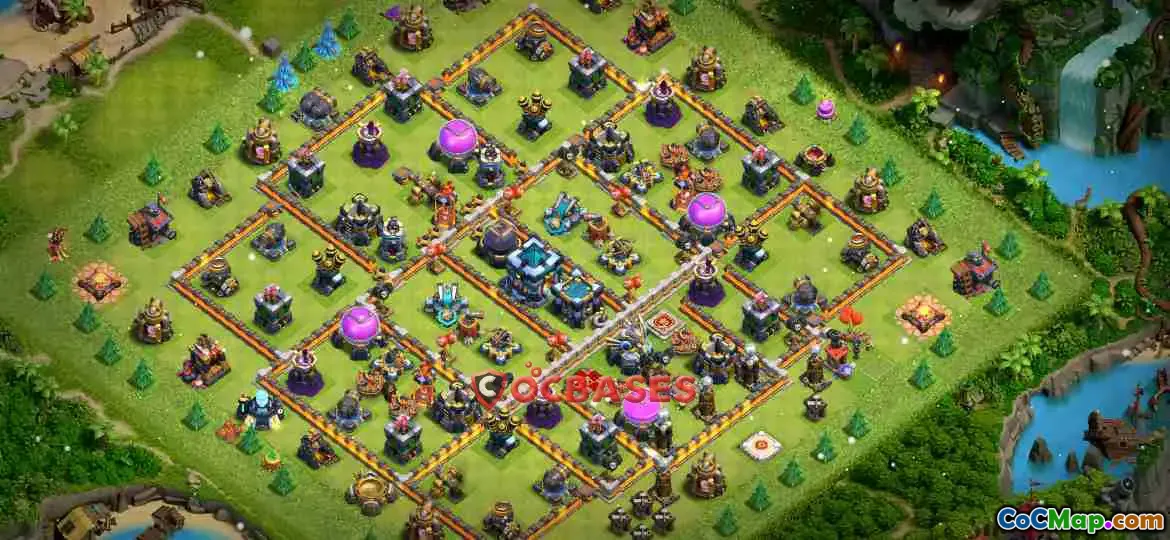 A Town Hall 13 farming base in Clash of Clans is specifically designed to help players maximize resource storage while minimizing losses during raids. This type of base focuses on strategically placing buildings to protect valuable resources like gold, elixir, and dark elixir from attackers. The layout ensures that important structures are well-defended, making it harder for opponents to reach them and steal resources, which is crucial for upgrading troops and buildings.