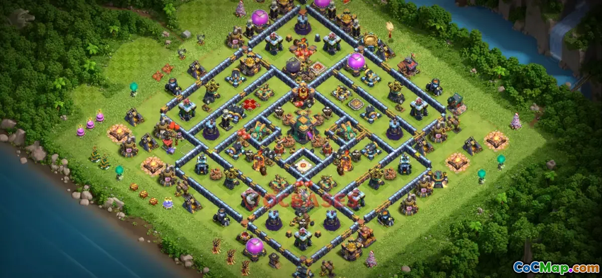 The Town Hall 14 hybrid base for Clash of Clans is designed to provide a balanced defense that can effectively handle various types of gameplay, including wars, clan wars leagues (CWL), and farming. A hybrid base typically combines elements of both farming and trophy bases, allowing players to protect their resources while still earning trophies. The strategic placement of defenses and traps is crucial in preventing opponents from securing a straightforward win, particularly against two-star attacks.